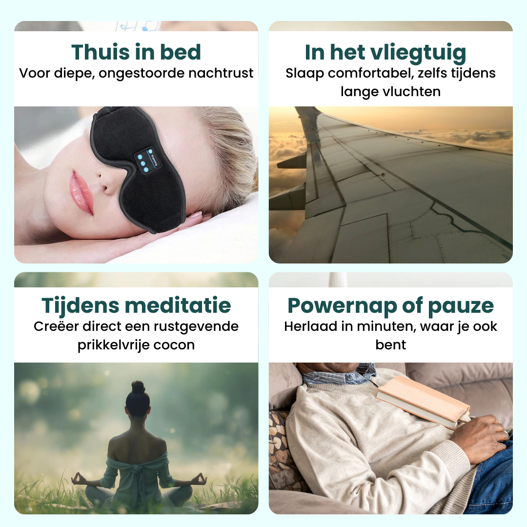 Val sneller in slaap en word rustiger wakker met het DeepRest™ 3D Slaapmasker. De ultra-dunne Bluetooth-speakers dempen prikkels, terwijl de drukvrije 3D-eye cups volledige blackout creëren—zonder lichtlekken en zonder druk op je ogen.